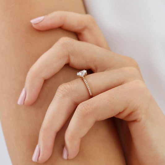 0.9 CT Oval Pave Lab Grown Diamond Engagement Ring